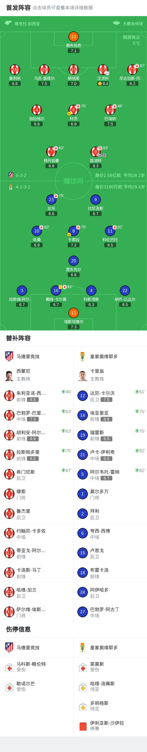 第28分钟,瑟洛特禁区抢点小角度抽射破门,马竞2-0奥维耶多