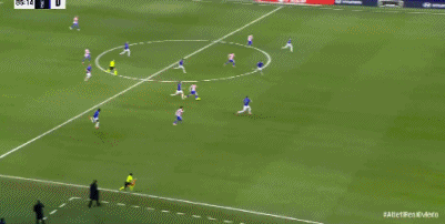 第85分钟,小西蒙尼禁区右路挑射打门,门将出击扑出皮球