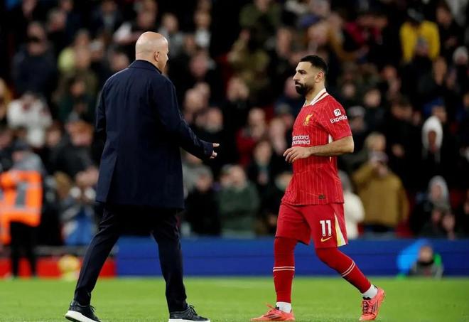 本场比赛,利物浦控球率和射门次数都占据上风,高位逼抢和前场的一脚传递都令人印象深刻。更为值得一提的是,在还剩2个换人名额的情况下,斯洛特也没有给萨拉赫替补出场的机会。或者说,没给后者在替补出场时对待克洛普那样的甩脸子机会。